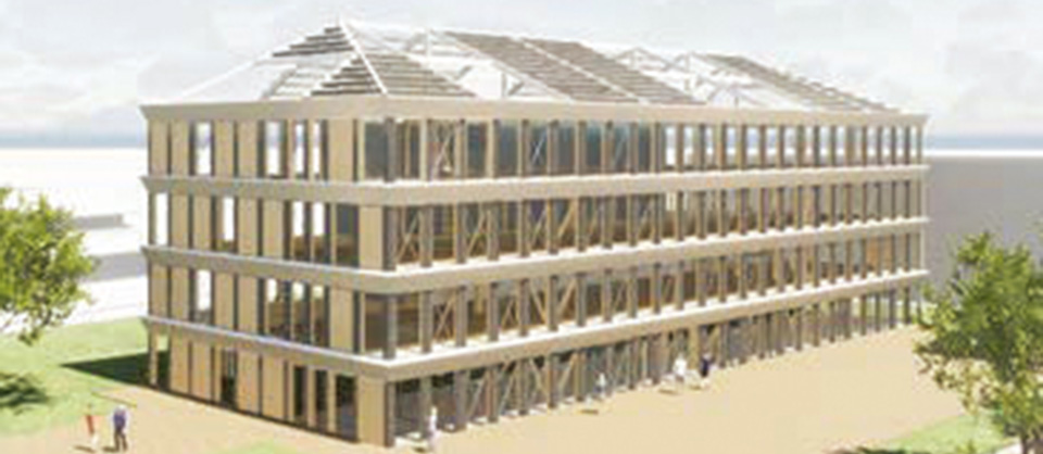 また、事務所は比較的広い空間を確保するために柱や壁の間隔を広げることが必要ですが、共同住宅の場合はそのような必要もなく、地震力などに抵抗する壁もたくさん入れられます。木造には様々な構法があることはすでに説明しましたが、構法によって得意とする空間が異なりますので、対照的なこの2つの用途を設定することで、どの構法からも提案がしやすくすることをねらいました。